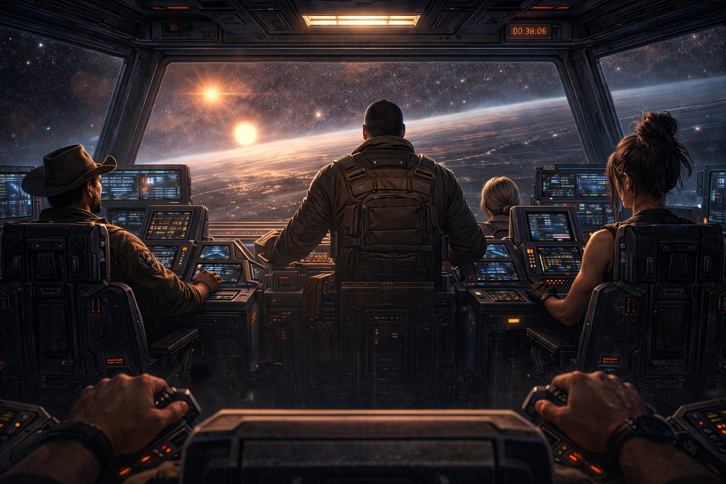 Mais nous y voilà. Un équipage sous contrat avec le Bureau de la Colonisation, à la recherche de mondes habitables. Et franchement, c’est génial. On découvre de nouveaux systèmes, on cartographie l’inconnu, et on est payés pour ça.