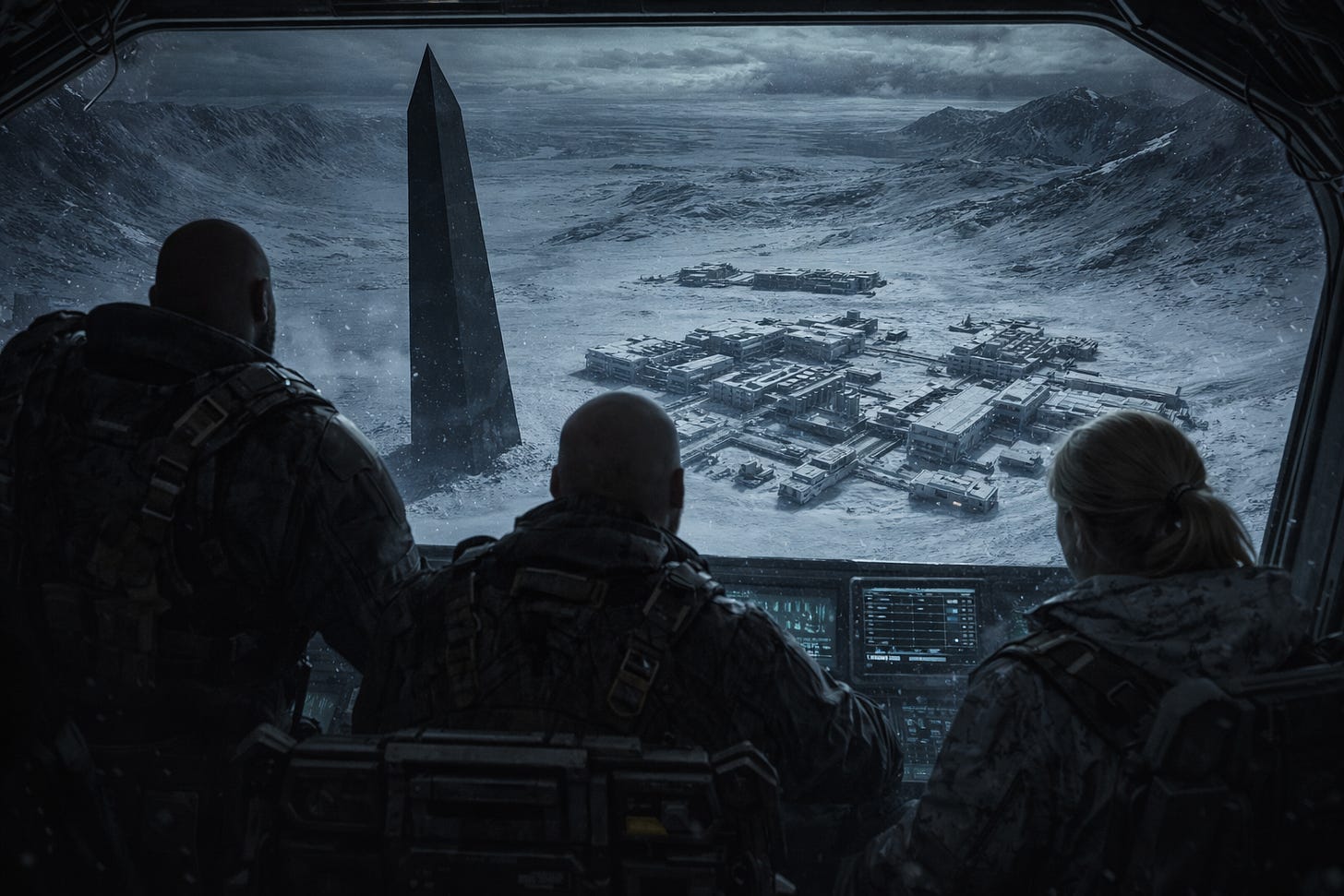Une aiguille noire. Un obélisque gigantesque, noir mat, qui perce le ciel comme une lance. Sa surface absorbe la lumière. Aucune neige n’y adhère. Rien ne s’y accroche. C’est parfaitement géométrique. Parfaitement lisse. Menaçant. Totalement alien.